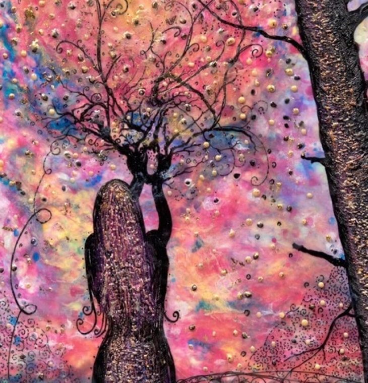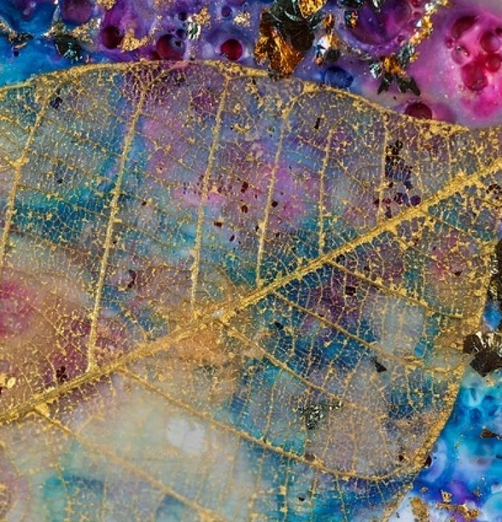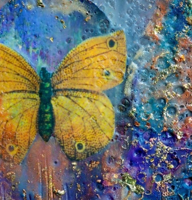 They are created by a local Stratford artist, Kim McCarthy. The rich vibrant ones are portions of Kim’s metaphorical paintings created with the ancient medium of encaustic and mixed media.